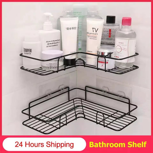 Bathroom Kitchen Punch Corner Frame Shower Shelf Wrought Iron Shampoo Storage Rack Holder with Suction Cup Bathroom Accessories